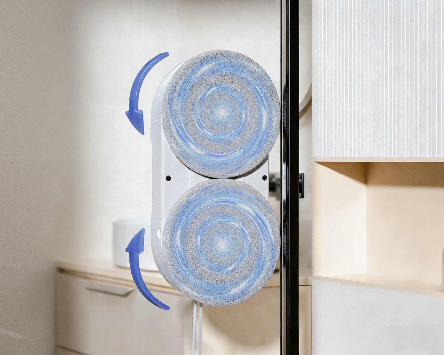 Compared to conventional window-cleaning robots with only a single suction cup, the JSDROBOT features a dual-suction design. If the suction of one cup fluctuates, the other immediately compensates. This provides twice the safety and significantly reduces the risk of falling.