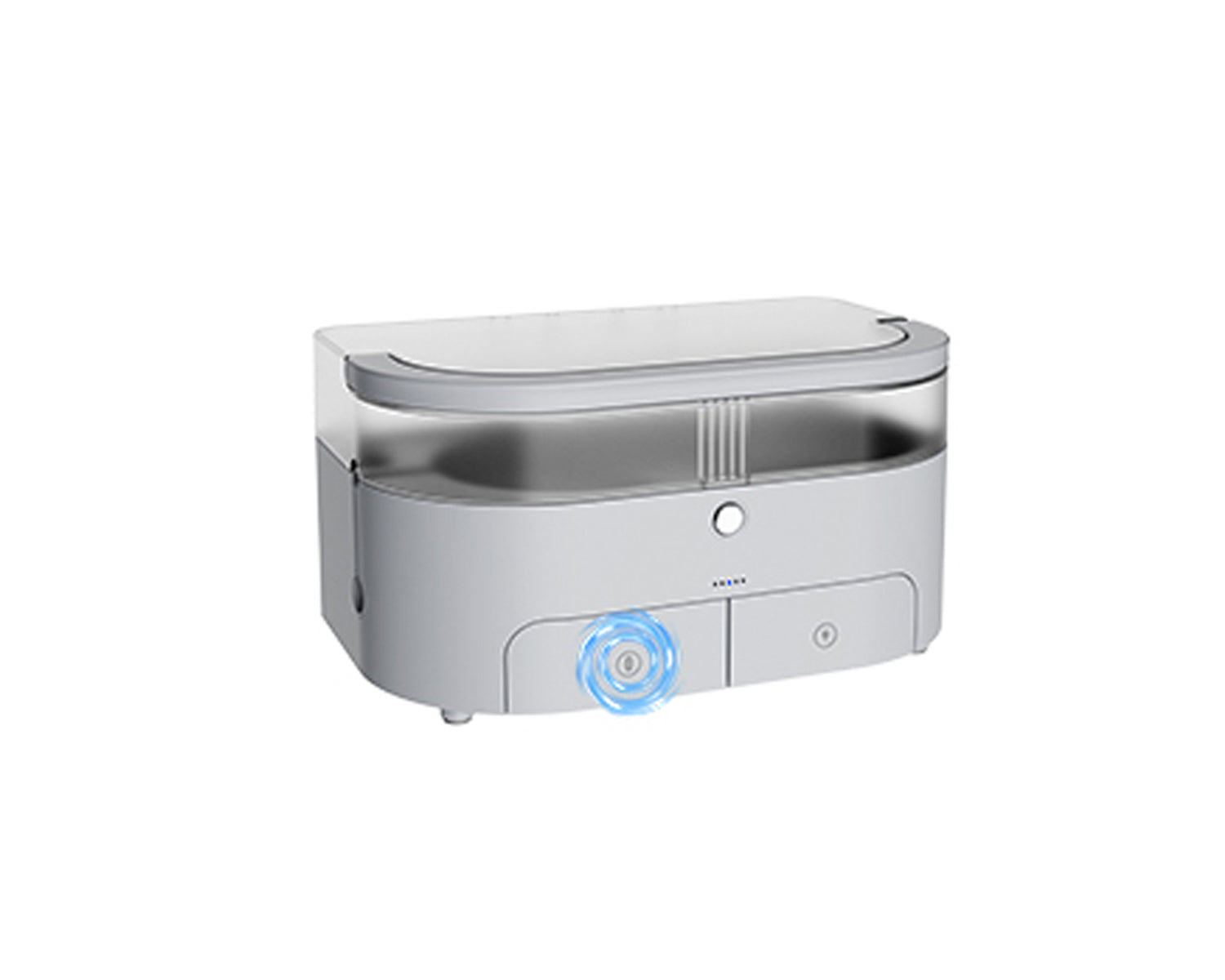 The base station is modular: the remote control, cleaning cloth, power cable, etc. all have their own designated place. That way, loose parts after use are a thing of the past and your home stays tidy.